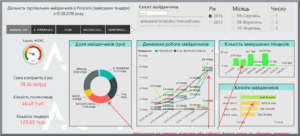 Спеціалістами нашого Бюро в рамках волонтерського проекту було розроблено модуль бізнес-аналітики, що на поточний час дозволяють моніторити результати закупівель по 24-м різноманітним аспектам та зрізам.