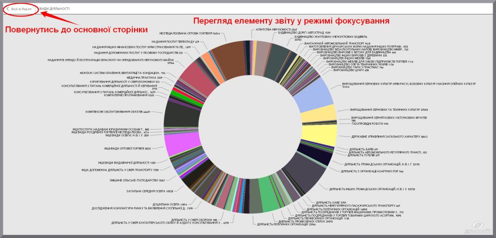 Повернутись з РЕЖИМУ ФОКУСУВАННЯ до основного режиму відображення сторінки можна, натиснувши на верхній лівий кут «Back to report»