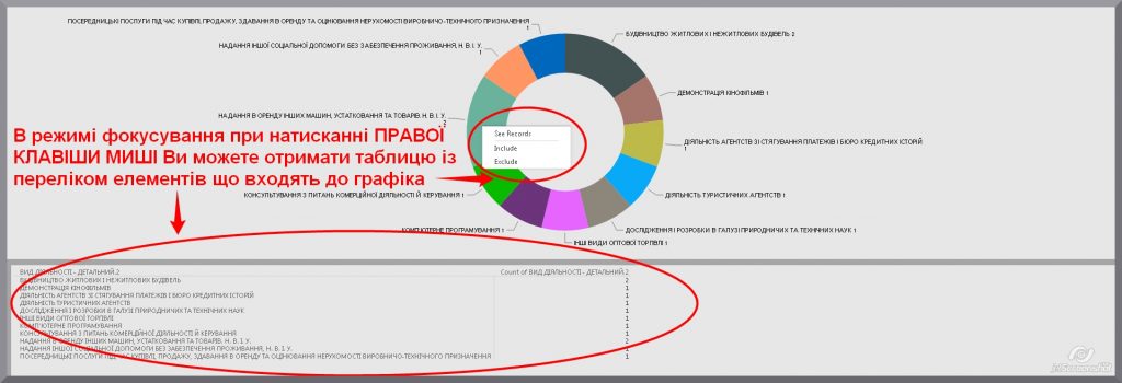 Також у РЕЖИМІ ФОКУСУВАННЯ можливо отримати додаткову статистичну інформацію про елементи що формують графік або схему