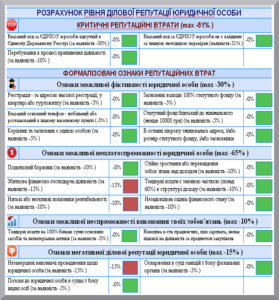 2. Висновок щодо рівня ділової репутації юридичної особи у відсотках з інфографікою;